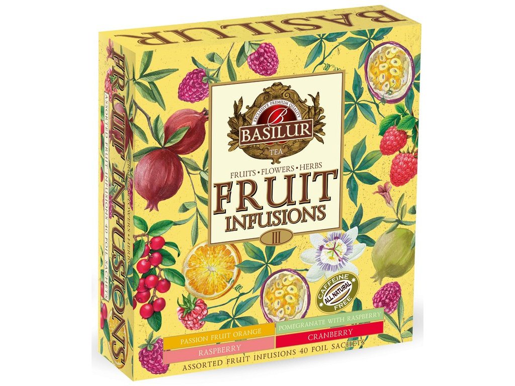 Stylová dárková kazeta plná ovocných čajů přináší osvěžující chutě a vůně pro každý okamžik. Osvěžující granátové jablko s malinou, svěží mučenka s pomerančem, oblíbená brusinka a tradiční malina – ochutnejte tyto jedinečné příchutě.