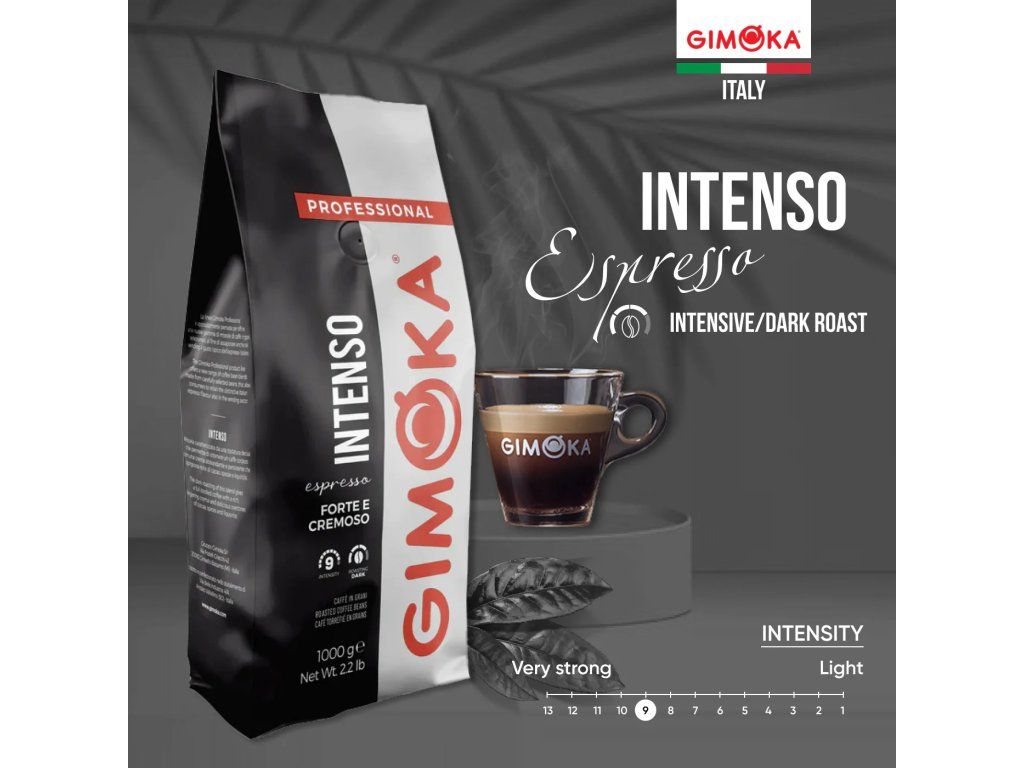 Popis: Gimoka Professional Intenso je směs arabiky a robusty, tmavě pražená pro plné tělo a intenzivní chuť. Káva se vyznačuje hustou, krémovou pěnou a nezaměnitelným aromatem s tóny kakaa, koření a pražených ořechů. Ideální na espresso, cappuccino nebo latté pro milovníky silné a výrazné kávy.