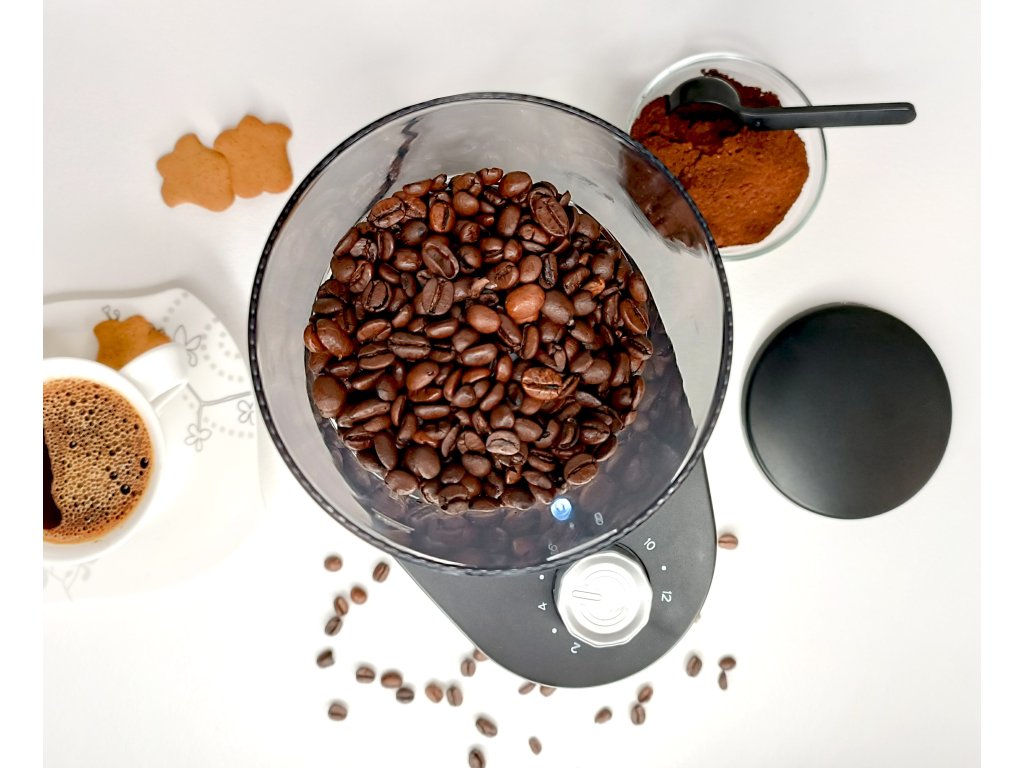 - Praktická funkce nastavení doby mletí (na 2 až 12 šálků kávy)